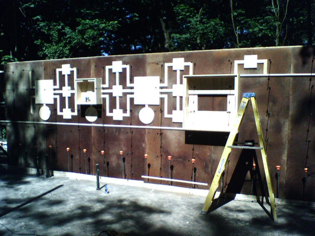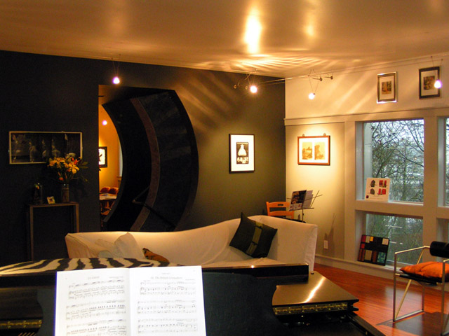 The lower level is essentially a daylight basement, and the concrete base walls at that level were enhanced with custom form work designed and executed by the owner/architect.