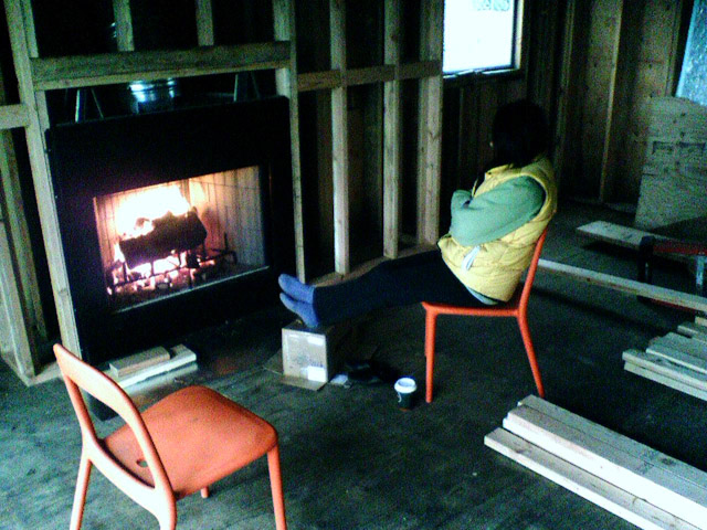 Two working fireplaces were incorporated, which were functional even before the electrical and plumbing had been completed. These fireplaces are legally part of the house's heating system, per energy code.