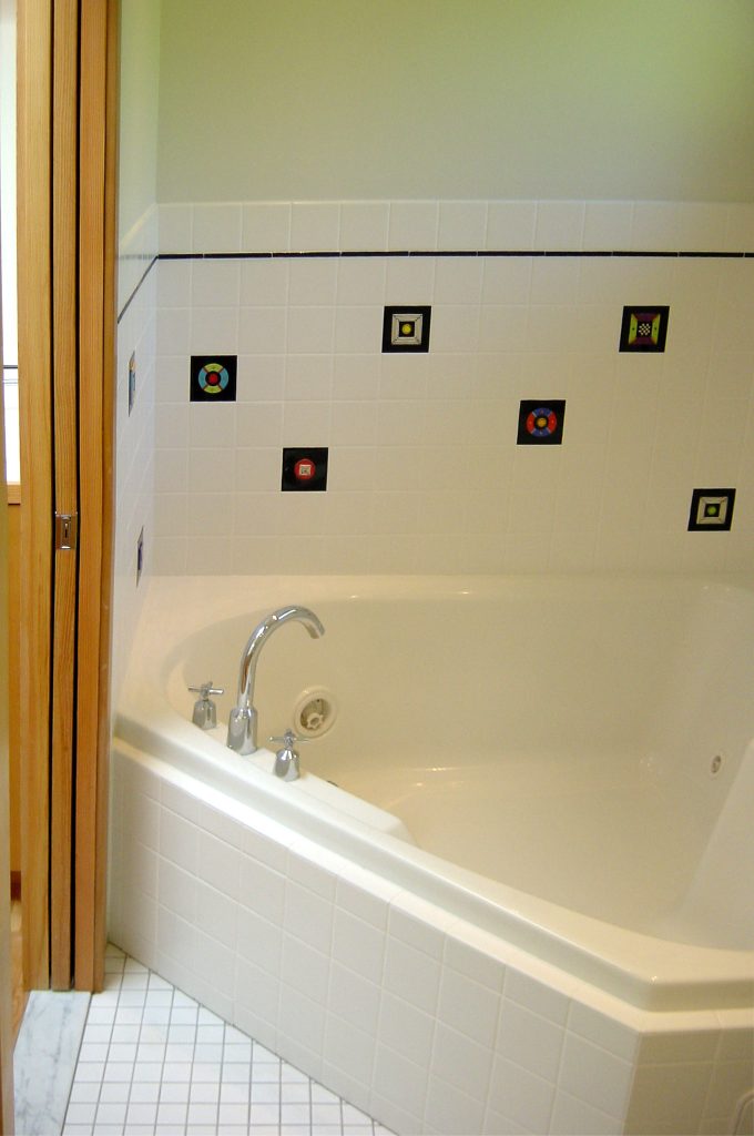 Part of a sweeping, multi-year upgrade program to this residence, we added a new Master Bedroom Suite in 2002. This suite was comprised of the bedroom itself, with new skylights, a new walk-in closet, and a new bathroom with both Jacuzzi tiled tub and walk-in shower.