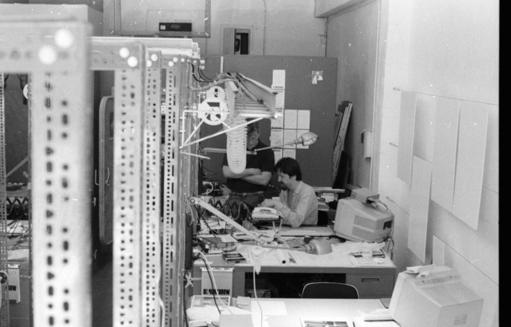 The initial build out at WORKSHOP 3D consisted of the restoration of the main storefront, construction of a new back room, paint, carpet, rubber flooring, bathroom fixtures, interior concrete block feature walls, a transom window at the entry, and a dropped soffit that organized the space, including new lighting and ceiling fans.
