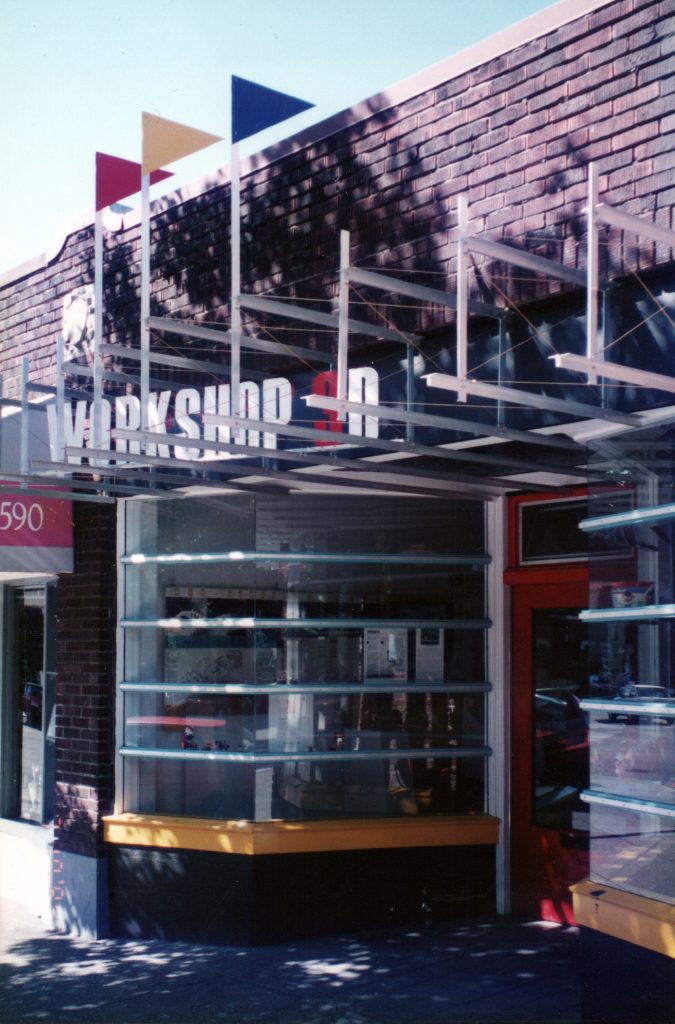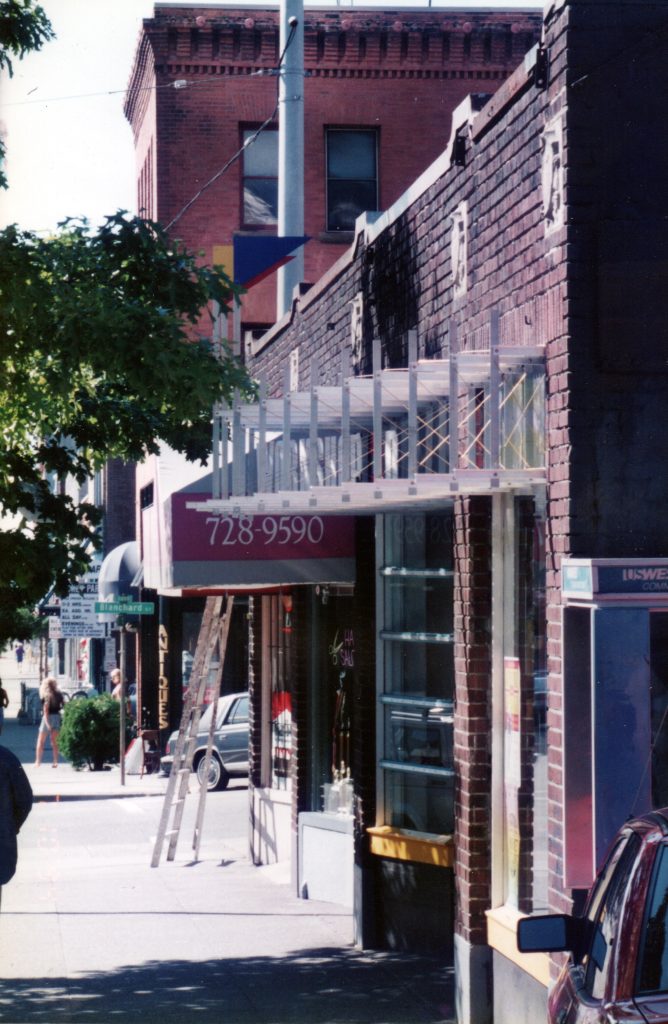 An entirely new storefront was constructed after the previous glass was all shattered in 1991 during the worst storm since Seattle’s Thanksgiving Day Storm of 1983. The canopy was constructed as a collaboration with the Principal of WORKSHOP 3D, Ray C. Freeman III.