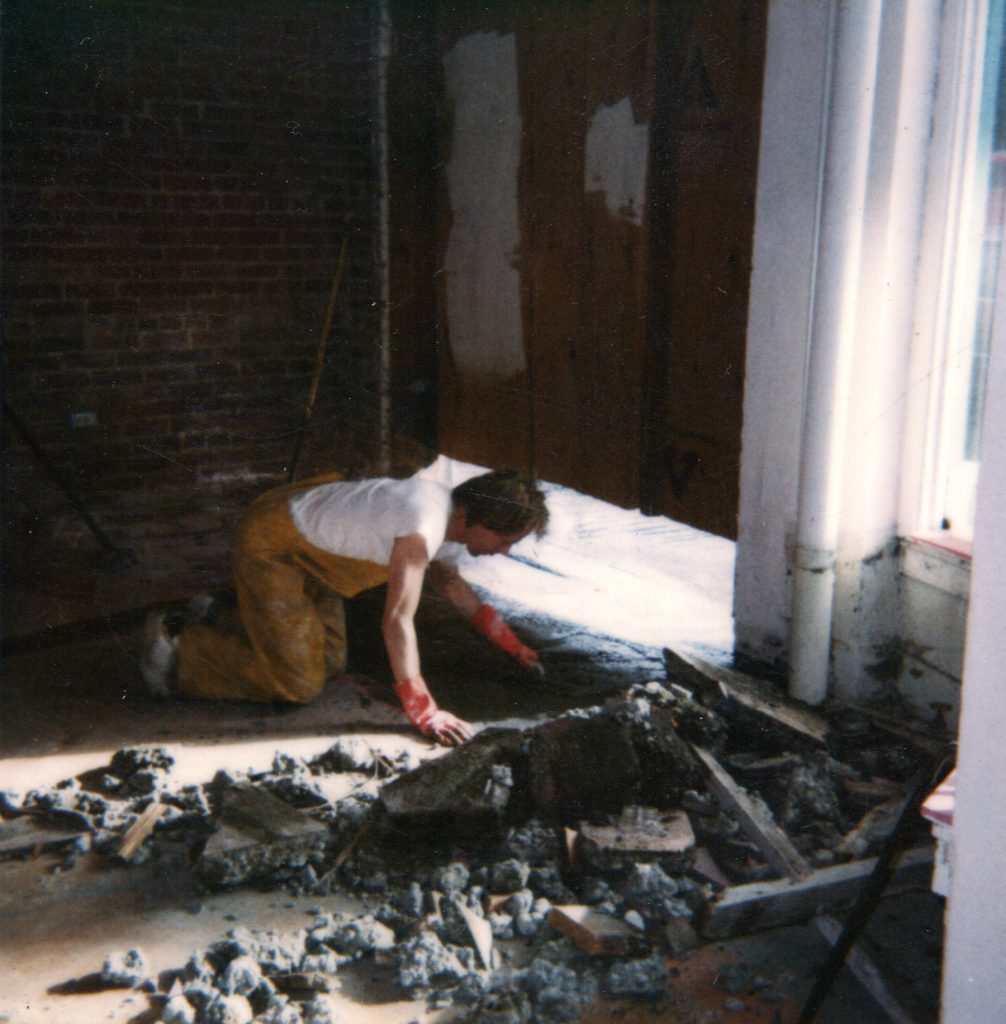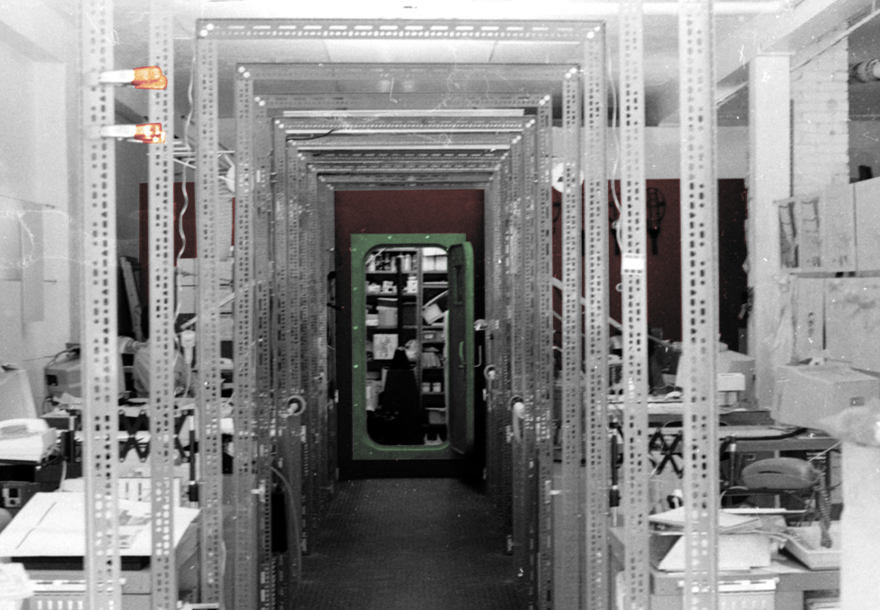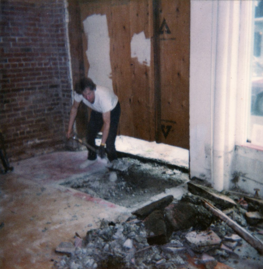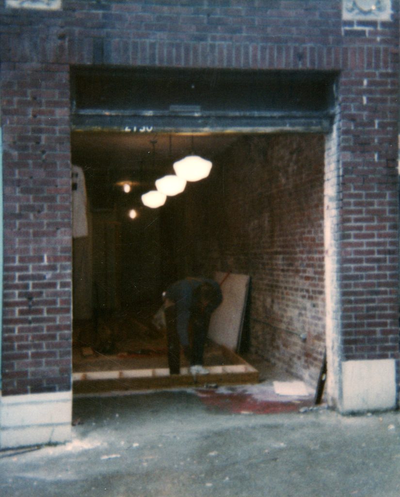 Subsequent improvements included the opening up of a previously sealed up part of the storefront with new sash and glazing, including leveling of the concrete floor behind the storefront, and the adaptive re-use of an existing street mural as shutters for the new storefront.